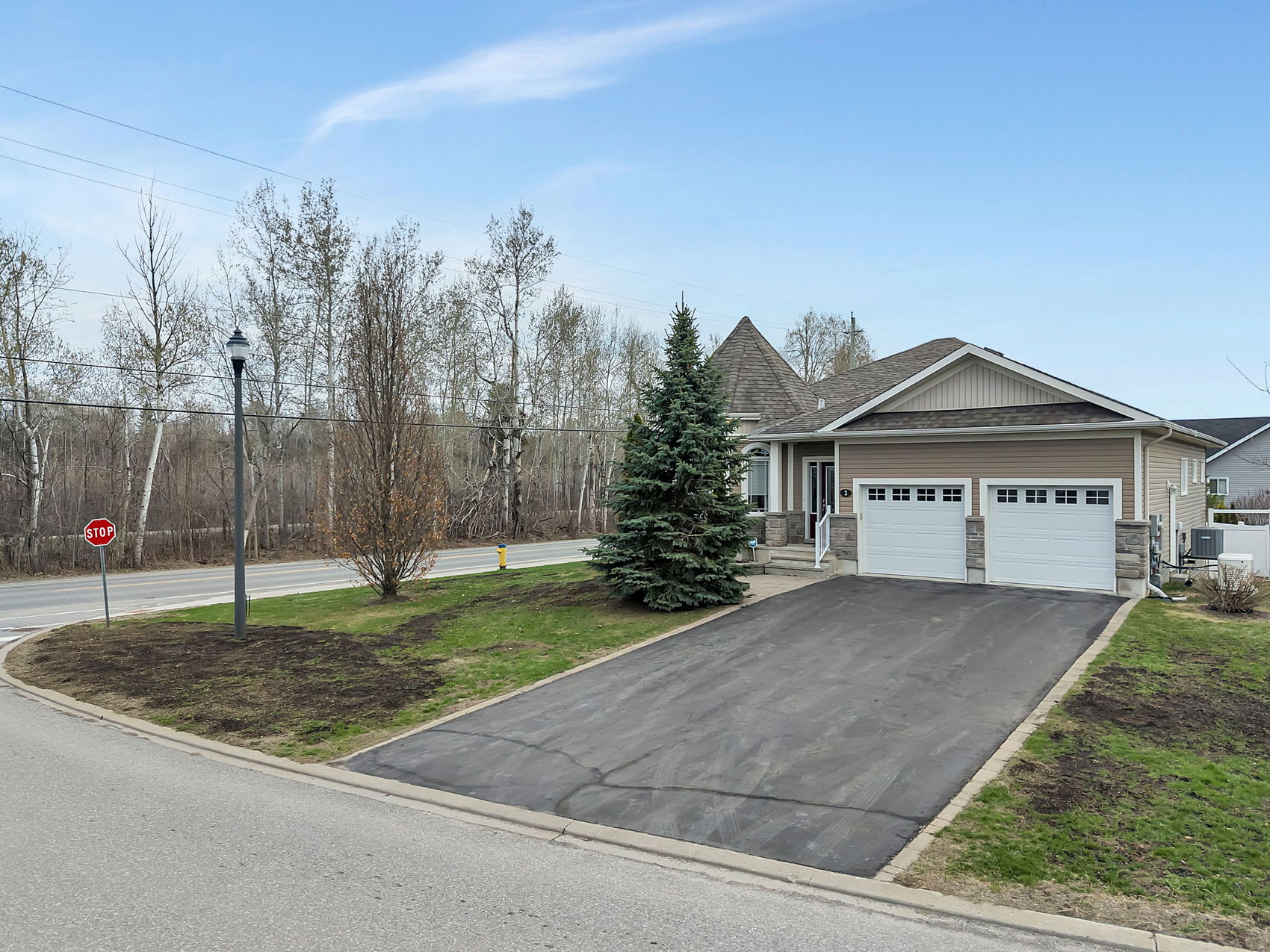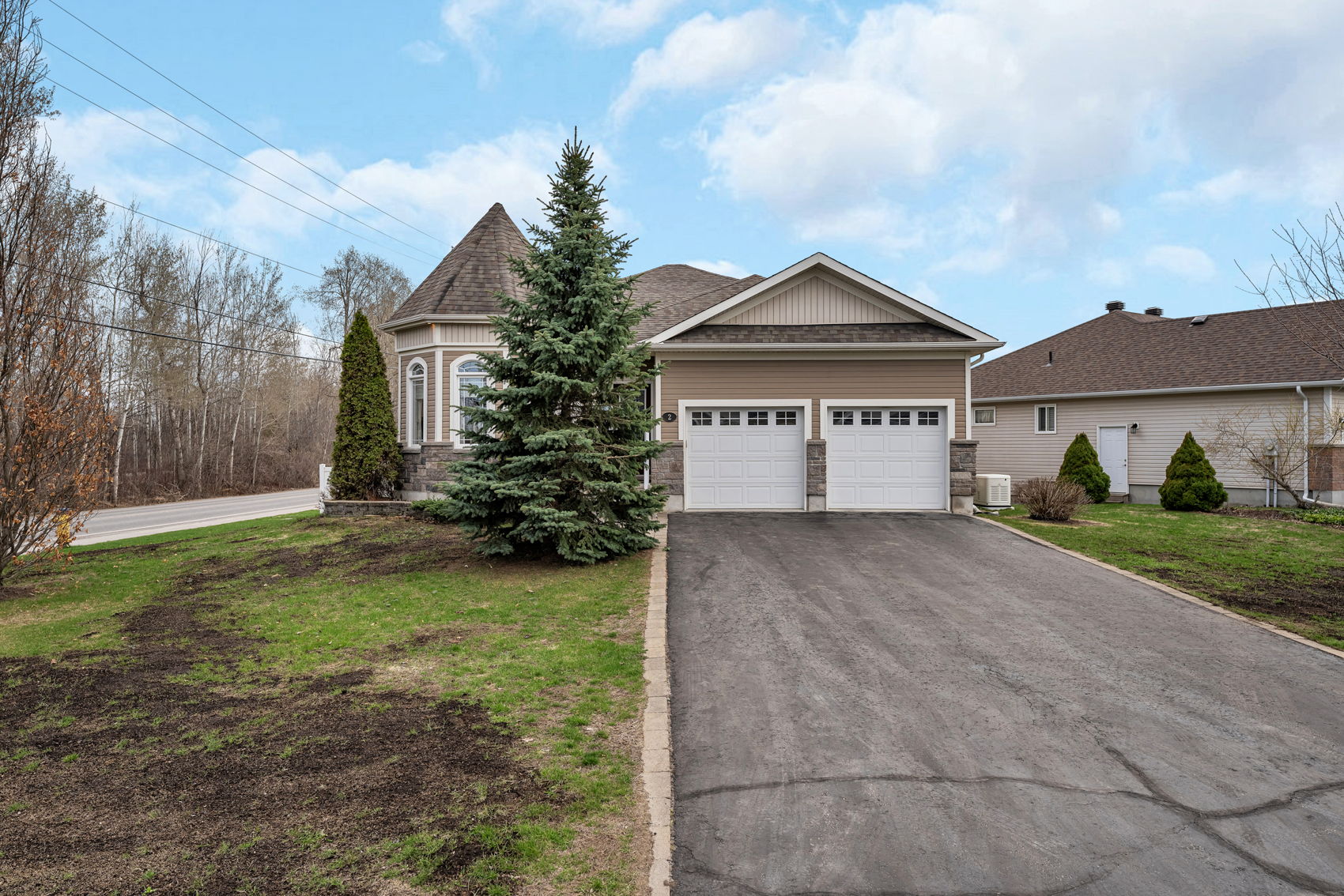 OPEN HOUSE SUN. MAY 3, 2-4 PM. Welcome to 2 Westerra Way in the highly sought-after Forest Creek neighborhood of Kemptville. This stunning 2009 bungalow offers 2 spacious bedrooms plus a den, 3 full bathrooms, and sits on a large, fully fenced corner lot. Steps to scenic walking trails and essential amenities. Impressive curb appeal with a stone façade and eye-catching turret. The inviting front porch leads to a bright foyer and open-concept great room featuring striking turret windows, a generous dining area, and a gourmet kitchen sure to please any chef. Stainless steel appliances include a double oven, refrigerator, stove, dishwasher & microwave. The kitchen features abundant solid wood cabinetry, ample counter space, a breakfast bar, and a large pantry. Patio doors open to a spacious deck with retractable awning, a lower patio, and beautiful low-maintenance perennial gardens. The primary suite offers a large sunlit bedroom, walk-in closet, and a luxurious spa-like 4-piece ensuite. The second bedroom is generously sized with its own 3-piece bath. Gleaming hardwood and ceramic flooring throughout the main level-NO carpets! Convenient main floor laundry with built-in shelving. The professionally finished lower level boasts a bright, expansive layout ideal for a family room, rec room, and sitting area, highlighted by a cozy two-way gas fireplace. Also includes a den (currently used as a 3rd bedroom), a full 3-piece bathroom, and ample storage. Oversized double car garage and parking for 6 vehicles. Fantastic location within walking distance to the Walmart plaza and quick access to Hwy #416. Only 30 minutes to Ottawa. ~WELCOME HOME~
